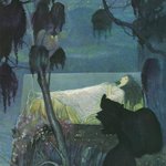 A Satyr Chasing Two Imps by Gustaf Tenggren #gustaftenggren #painting #satyr #pan #mythology #illustration