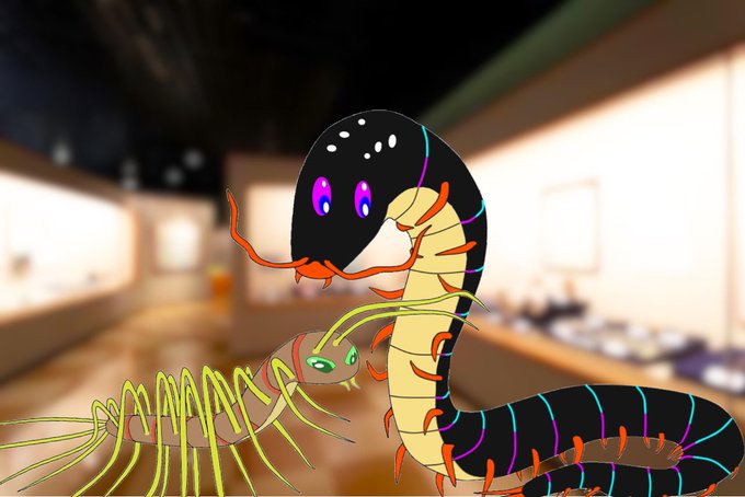 昨日バイト先にいらした方と同形状の神様(ゲジゲシって言って怖くないですねムカデより怖いって言われたりしますが、大したことない) ゲジゲシの方はマック=フロップという名前で、ハンバーガーみたいな配色🍔 ムカデさんはコズミク #character #イラスト #Gxsps #みんなで楽しむTwitter展覧会 (下へ