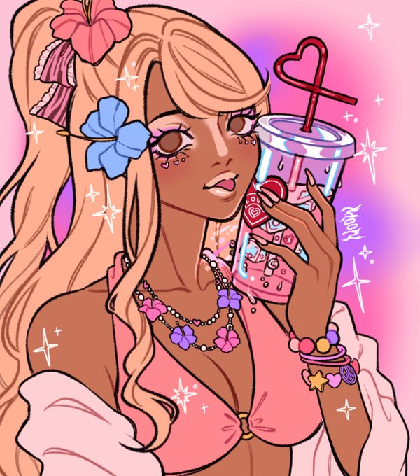Beach day ! 🏖️🍹 . . . 🏷️ #digitalart #drawing #gyaru #artistsontwitter #characterdesign #characterart #originalcharacter #arttwt 🍊💖
