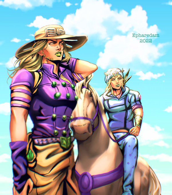 My piece for the most delicious @JJBAFoodZine ❤️🌸✨ #jjba #jojo #JoJosBizarreAdventure #steelballrun #jjbafanart #diegobrando #johnnyjoestar #gyrozeppeli #hotpants