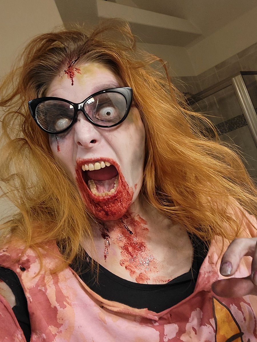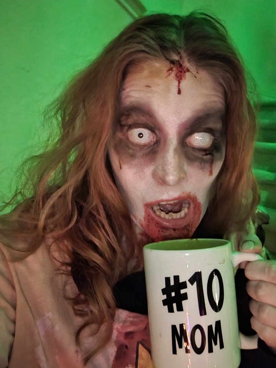 I was "Zombie Me" at our #HalloweenParty last night! It was my first time doing this kind of makeup and I had so much fun! 😄 Also discovered how brave (foolish?!) my kids are that they let me tuck them in like this! 🤣 #Halloween #Hallowen2022