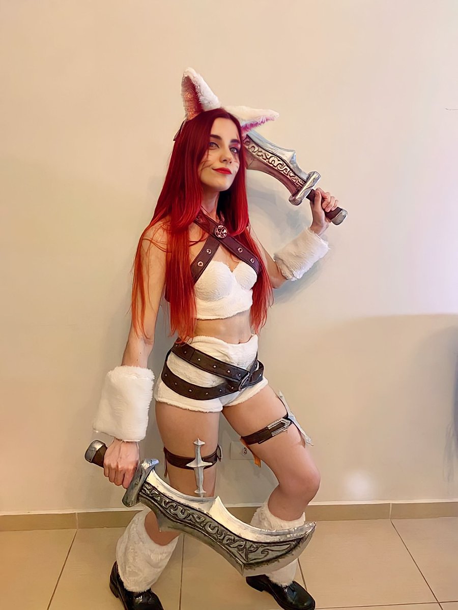 E essa foi minha fantasia de halloween desse ano ♡♡♡ #Halloween #halloweenparty #LeagueOfLegends #katarina #katarinakittykat #cosplay #streamergirl