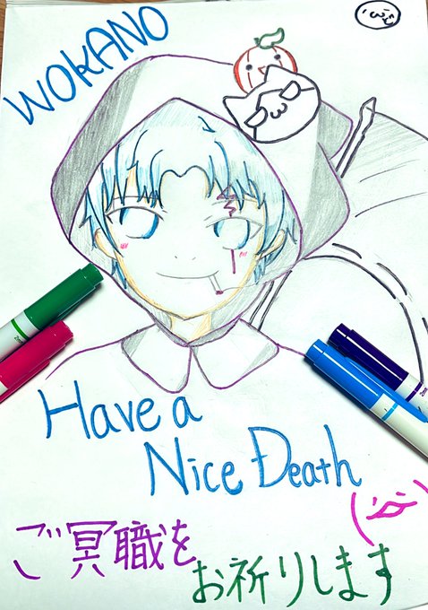 アナログのイラストって本当に 画力が無いからただの[お絵描き]なのよ… 本当は鎌をブンブン振り回して ニヤってしてる どエロフェイスのヲカノちゃんが描きたかったけど そんな画力は僕にはないので 転生しようと思います #ご冥職をお祈りします #ふんばりアート #HAOなま