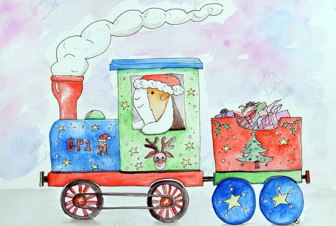 Day 24 #ArtAdventCalendar Final day! Had to be a Cutie being festive! Wishing everyone a Happy Christmas and I hope you have a lovely time! Got all the wrapping done! Phew! 🎄🎄💖💖 #lovecutie #christmastrain #christmaseve #HappyChristmas
