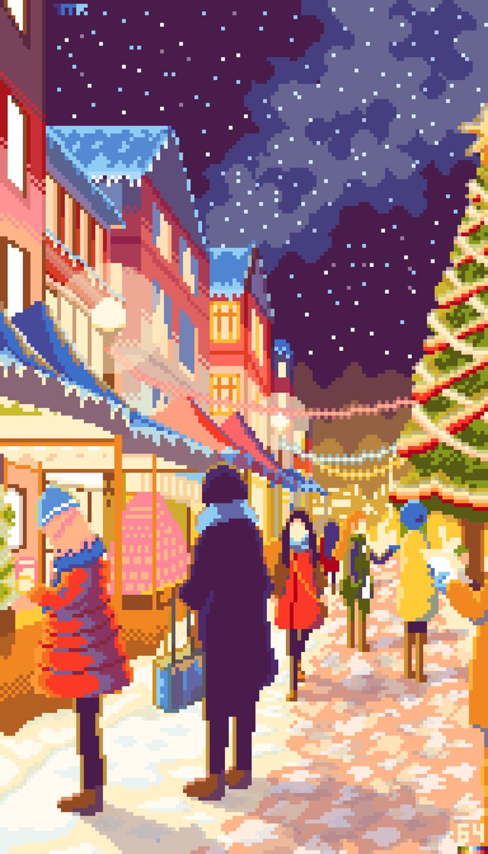 Winter Festival Winter is coming of course it's time to enjoy walking with many lights in night! Happy holiday for y'all! For who that must skip it, let's just cheers! #T_MR2 #illustration #pixelart #イラスト #ドット絵 #HappyHolidays #opencommission #ArtistOnTwitter