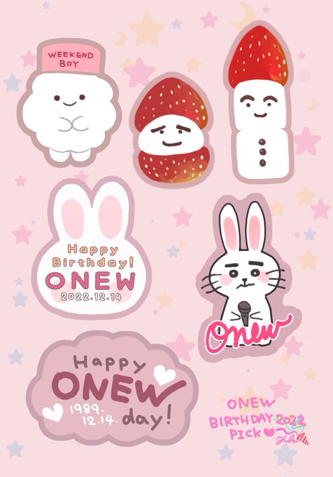 ONEW BIRTHDAY🎂 ケーキピック2022🍓 7-ELEVENネットプリント印刷🏪 予約番号「16542604」 L カラー:40円 2022/12/21迄 プリンターが家にある方はこの画像を印刷してもOK👌イラストをハサミで切って、後ろにつまようじをテープで貼ってね🥳ストローに付けてもかわいいですよ🍹 #HappyOnewDay🐰