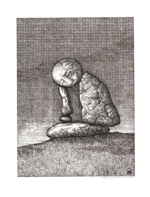 A stone that is no longer hard. Une pierre qui n'est plus dure. #drawing #dessin #stone #inkdrawing #hatching #illustration #Art #artist