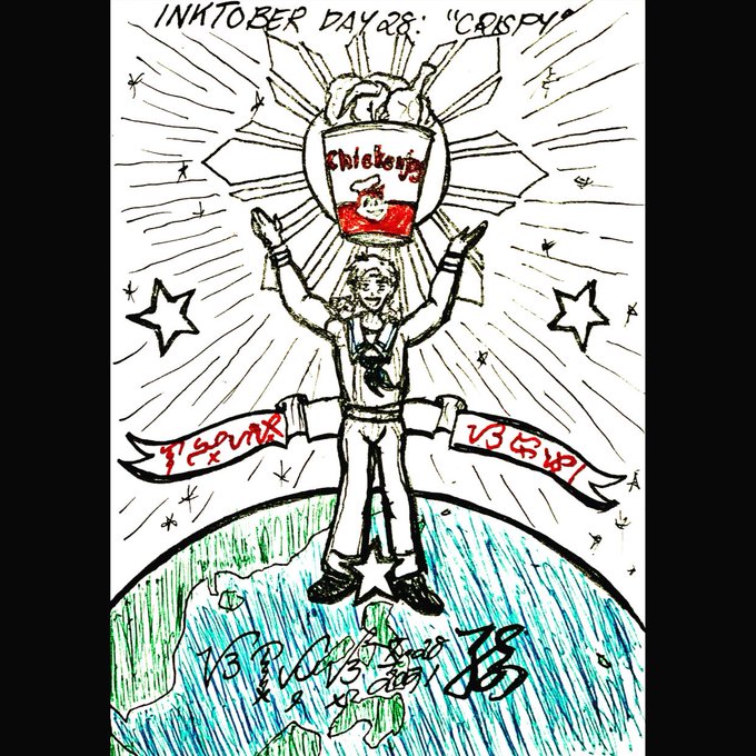 “Crispy” Day 28/31 #Inktober2021 (#Philippines from #hetaliaworldstars giving the world his langháp saráp gift to man. 🍗❤️) #inktober #inktoberph #ink #sketch #crispy #hwsphilippines #ヘタリア #ヘタリアフィリピン #chickenjoy #notsponsored #traditionalart #artprompt #artph