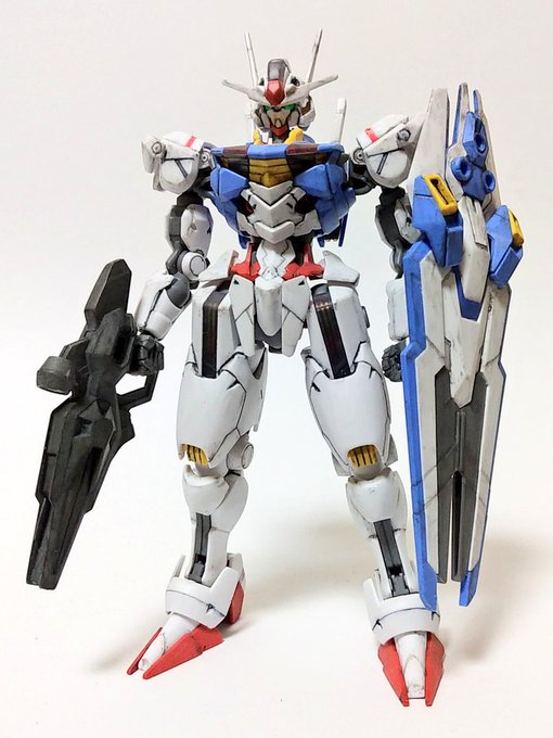 一部グレーが足りないくらいで、色分けもかなり良好です。HGバルバトスの時は結構グレーが足りなかったし、ホイルシールで補う箇所も多かったので凄い進化 目の色分けすら当たり前になってる😅 青のサーベルって良いね😊 #HGガンダムエアリアル #ガンプラ #ガンプラの画像を貼るとRTされると聞いて