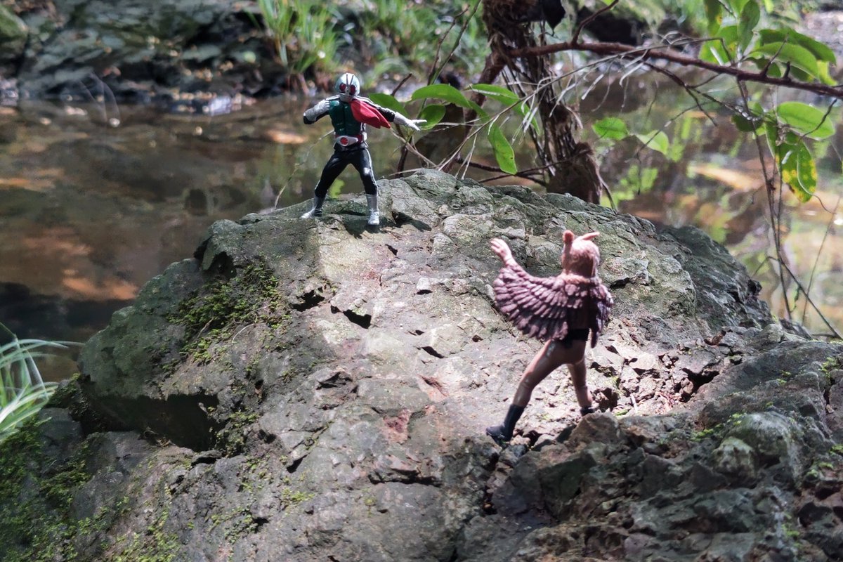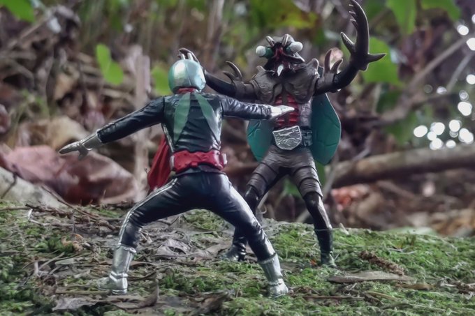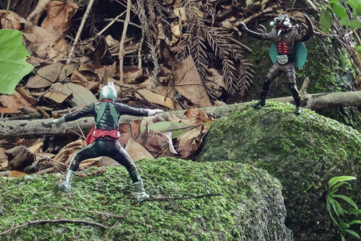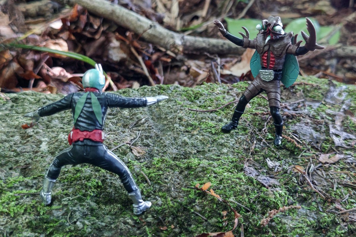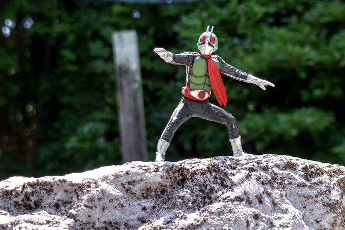 別の場所にて撮影🎵やっぱり一番最初に撮った場所の方がいいな~ 雨なんて降る予報じゃあなかったのに・・・途中、雨が降ってきて撤退( ノД`)… #仮面ライダー #仮面ライダー新1号 #オモ写 #特撮 #ガシャポンHG #HGクラシック2 #HG仮面ライダーclassic弐
