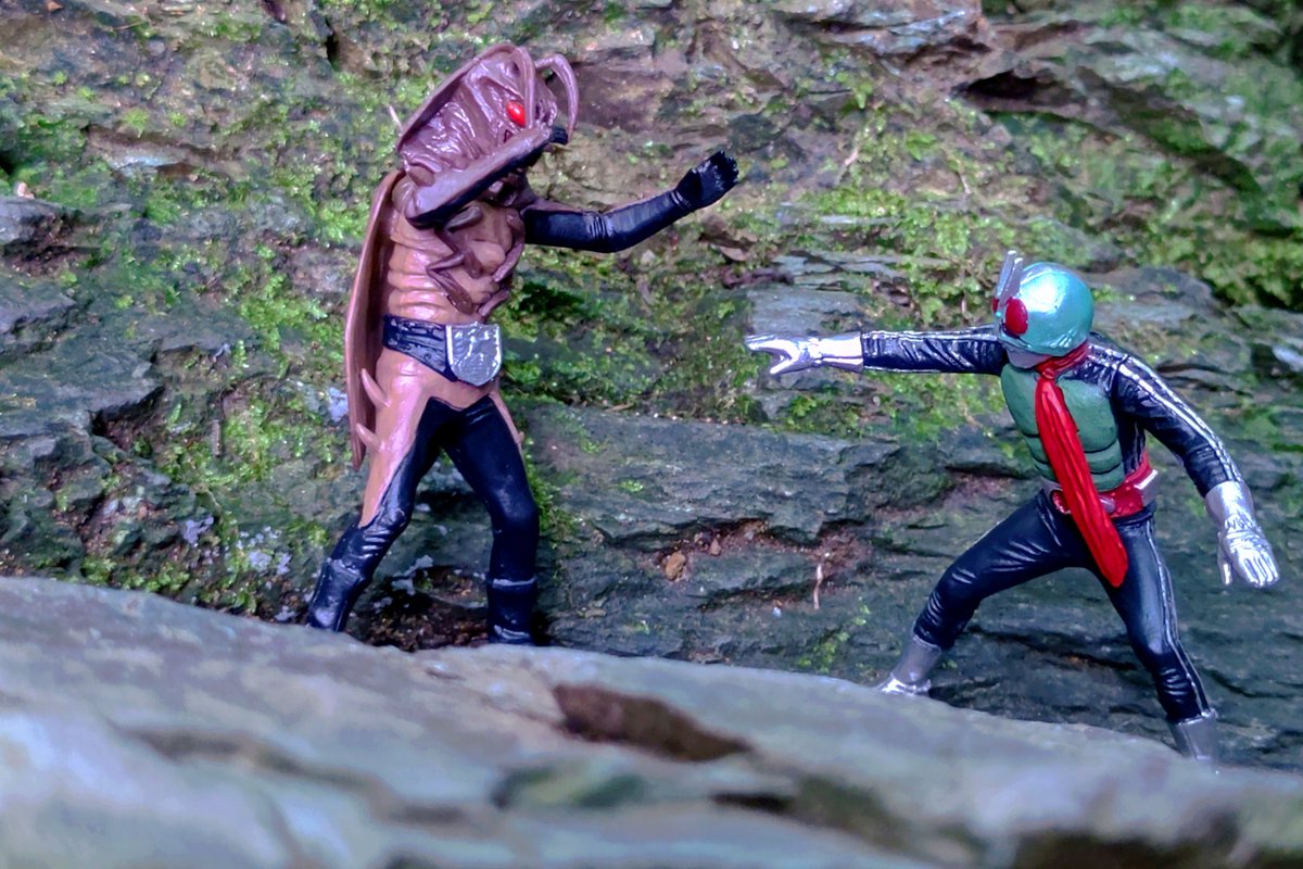 「最後の勝負だな!こい‼️」 今日はHGシリーズづくしでした( ´∀`) #仮面ライダー #仮面ライダー新1号 #オモ写 #特撮 #ガシャポンHG #HGクラシック2 #HG仮面ライダーclassic弐