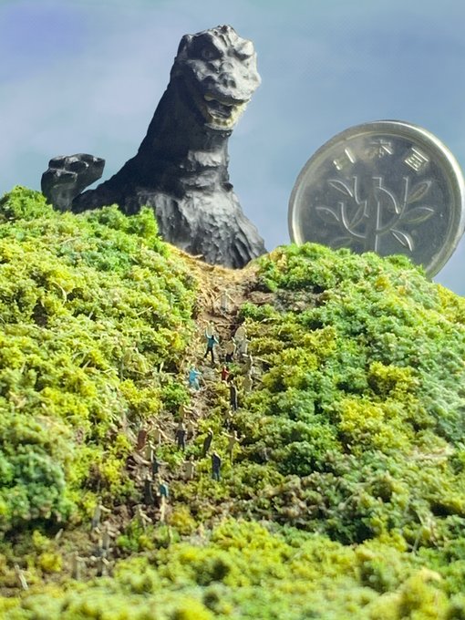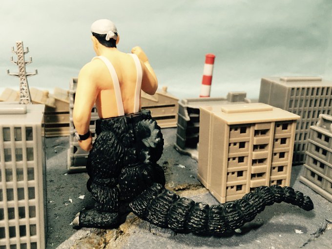 #夜のフィギュア撮影会 お題 『この3年間でのお気に入りの1枚』過去作 怪獣総進撃!さんざん既出だけどやっぱこれが一番お気に入りかなー😄 #ゴジラ #godzilla #HGゴジラクロニクル #HGゴジラ #怪獣総進撃 #オモ写