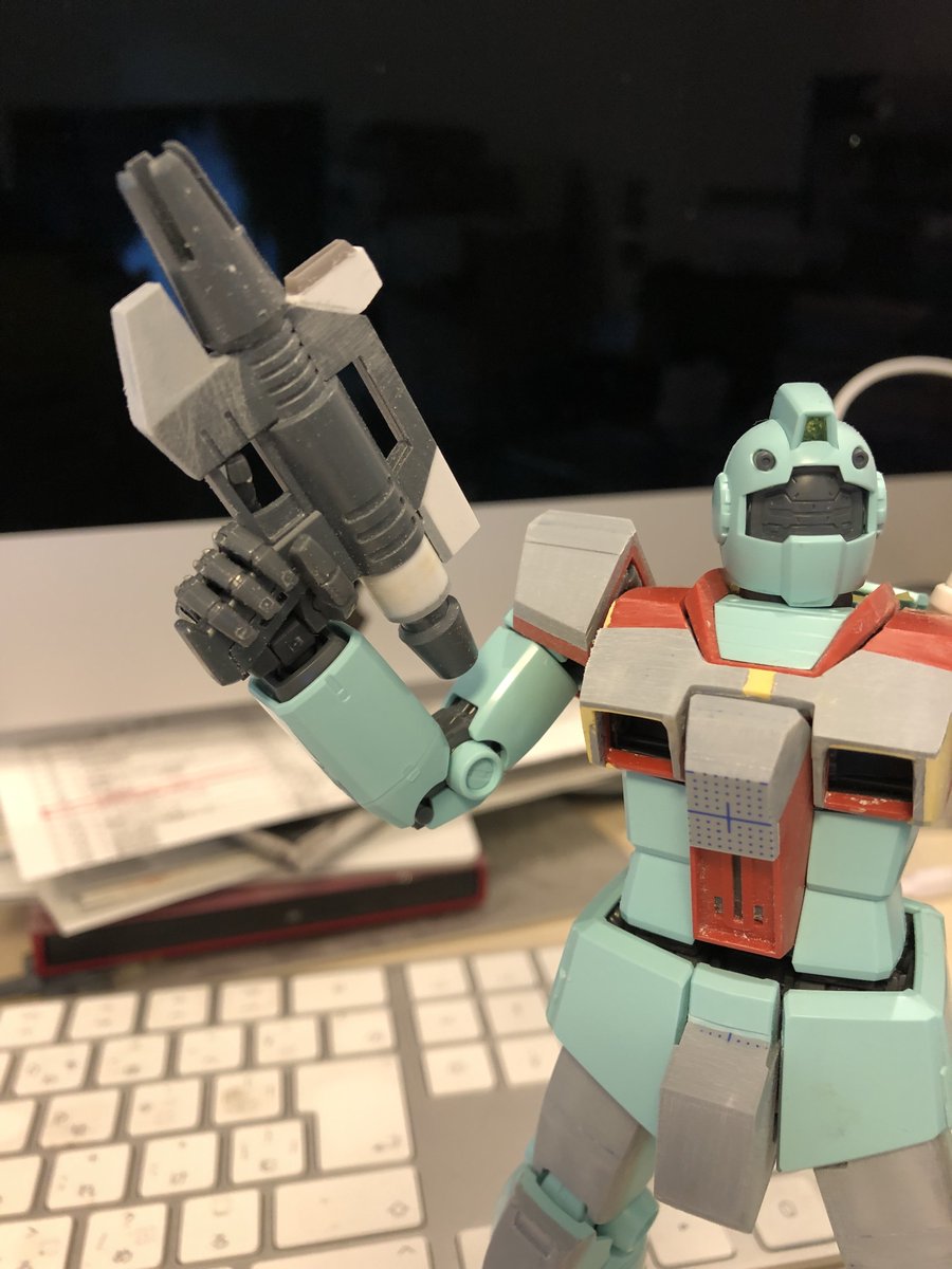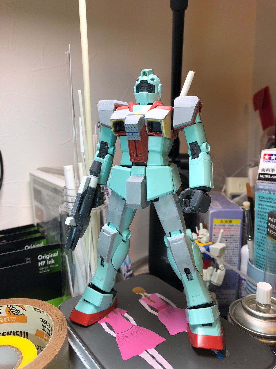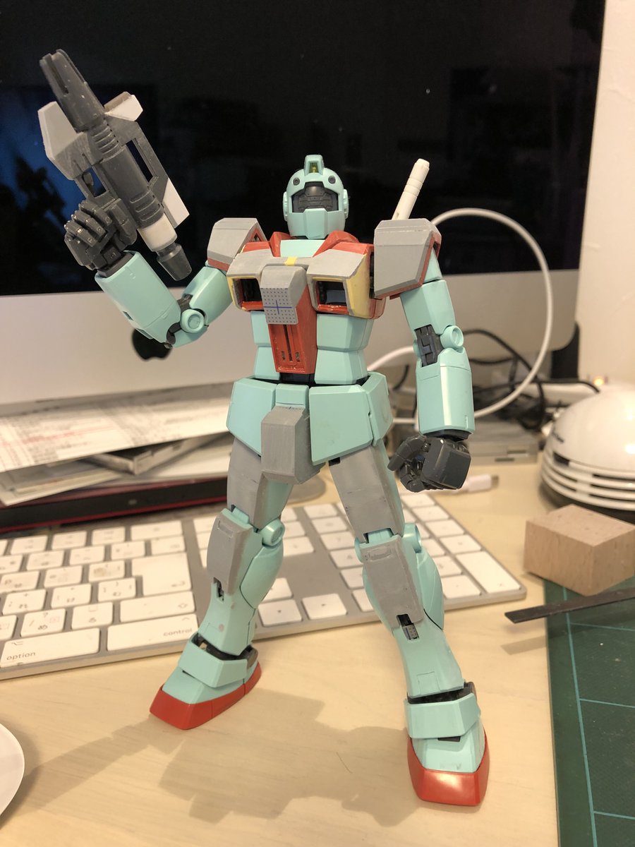 パーツ待っている間に #HGメイレスケンブ に手を出してしまいましたが、ジムはビームスプレーガンの改造と、肩形状を変更しています。 肩はわかりにくいですね、上部を絞って傾斜つけました(3枚目) #ガンプラ好きと繋がりたい #ガンプラの画像を貼るとRTされると聞いて #ガンプラは自由だ #ジム