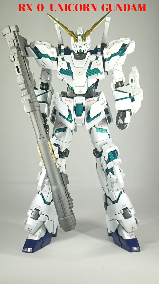 HGユニコーンガンダム完成♪ メインはパールホワイト、サイコフレームはエメラルドグリーンをキャンディ塗装_(:3」 ∠)_ #ガンプラの画像を貼るとRTされると聞いて #HGユニコーンガンダム