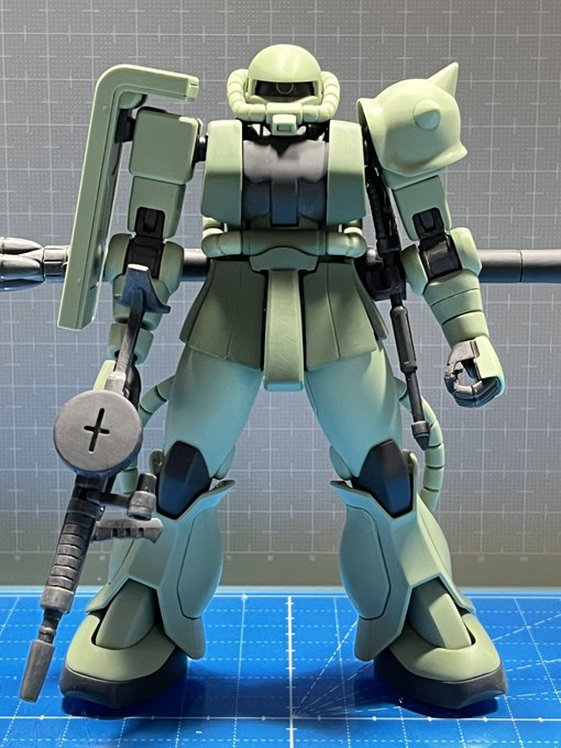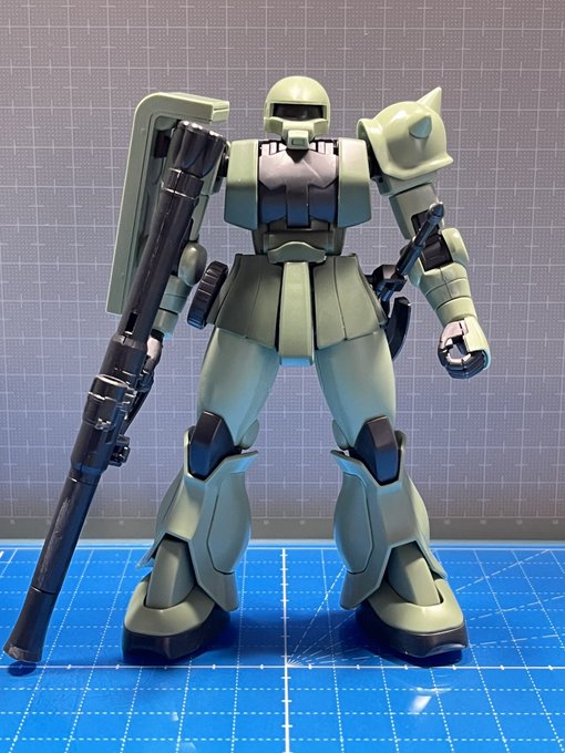 下地処理おわたー\(//∇//)\ そして塗装も終わったり😁 明日は筆塗りで部分塗装して墨入れから〜のデカール,トップコートまでやっぞ💪 イメージだけはいつも完璧👍 #HGリバイブザク #ガンプラ好きな人たちと繋がりたい #ガンプラ