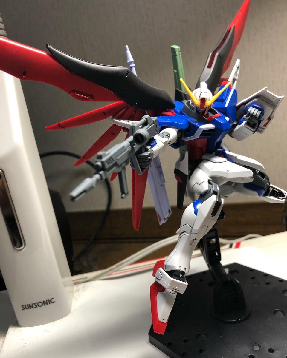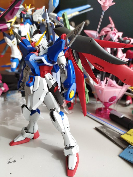 こんにちは!! HGCE デスティニーガンダム完成!! 割と重田智さん的な画は撮れたかなぁと思いたい!! これで一段落!! #ガンダム #ガンプラ #ガンプラ好きと繋がりたい #ガンプラの画像貼るとRTされると聞いて #HGCE #デスティニーガンダム