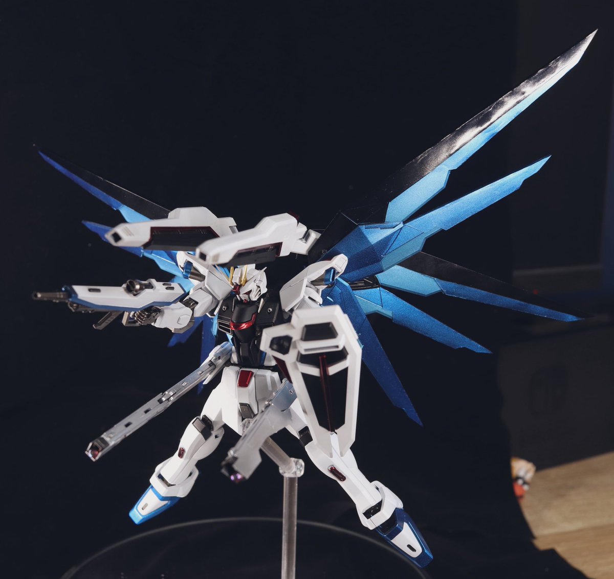 HGCEストライクフリーダム。今回光沢トップコート仕上げ。何気に初めて光沢にしたかも。今回のこだわりはドラグーン。内部フレームがチラ見え出来るように工夫。 #hgce #ストライクフリーダム #ガンプラ #ガンプラの画像貼るとRTされると聞いて #恋するプラモ道