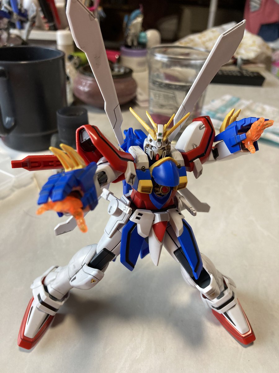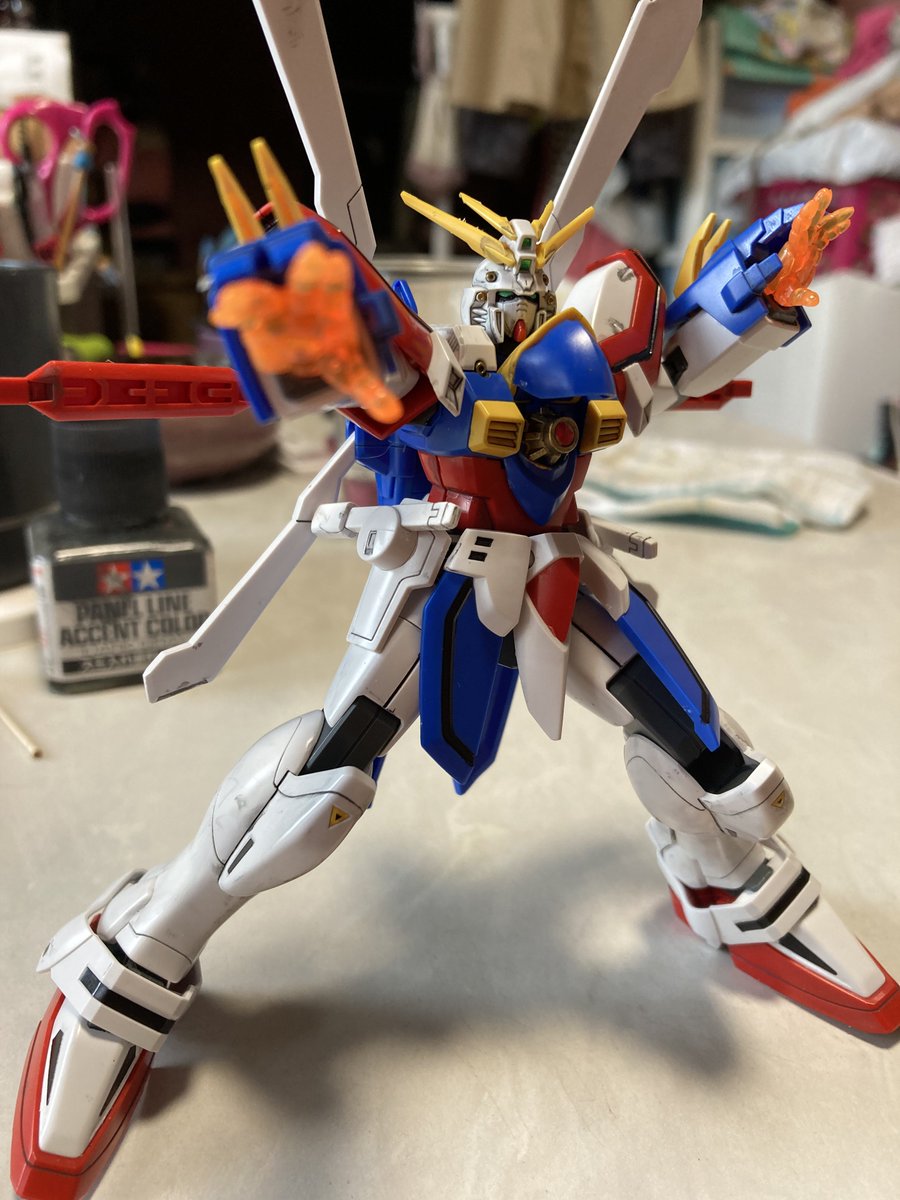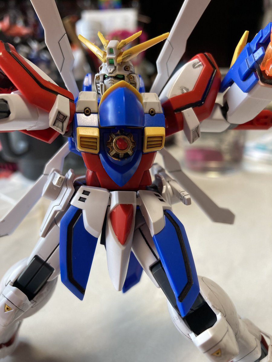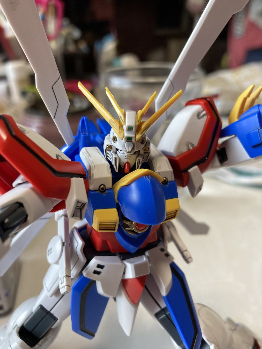 #ガンプラ #ガンプラの画像貼るとRTされると聞いて #ガンプラ女子 #HGFCゴッドガンダム 完成しました✨💖 アンテナシャープ化、一部塗装、フロントアーマー分割化しました。後もう少し汚しをかけて次晴れたらトップコート吹いて完成になりますが、とりあえずは完成です。