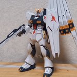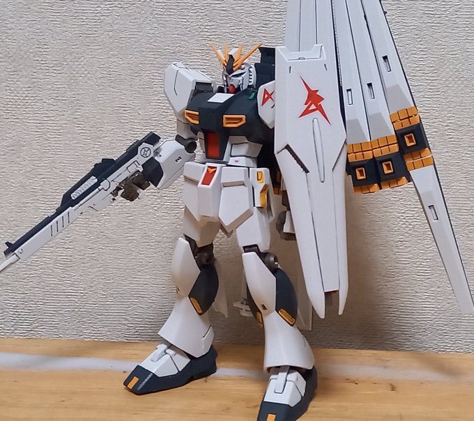 #HGUCνガンダム #ガンプラ好きな人と繋がりたい #ガンプラはどんな自由な発想で作ってもいいんだ #ガンプラ #ガンプラの画像を貼るとRTされると聞いて 昨日から製作していたνガン完成~(^o^) 素組み➕スミ入れ➕部分塗装➕つや消しの組み合わせで作りました👍️