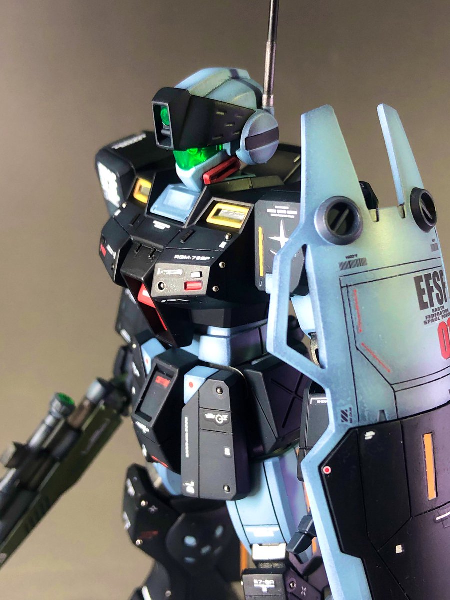 自分的に貧弱に感じたところを盛ってみました。カッコええ(*´д`*) ・肩アーマー装甲追加(エポキシパテ) ・腰アーマー1mm厚み増し ・下脚部2mm幅増し #ガンプラ #HGUCジムスナイパー2