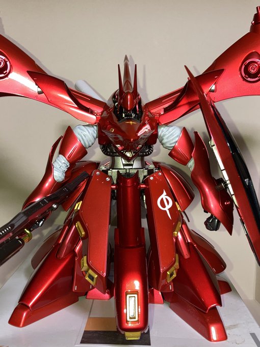 今回は磨きまくって表面処理にこだわったのでクリアーカラー一回目でもかなり輝きがいいと思う! 今週は出張で模活できないけど、帰る頃には完全乾燥してるので、細かな荒れは6000番あたりで磨いて更に表面を慣らしたいと思う! #HGUCナイチンゲール #ガンプラの画像を貼るとRTされると聞いて