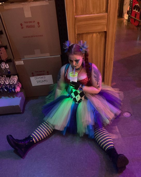Spending hours on a cosplay only for them to fall off 🥲 #cruaheddreams #hhn #thisiswhyidrink #cosplay #halloweenhorrornights #chancetheclown