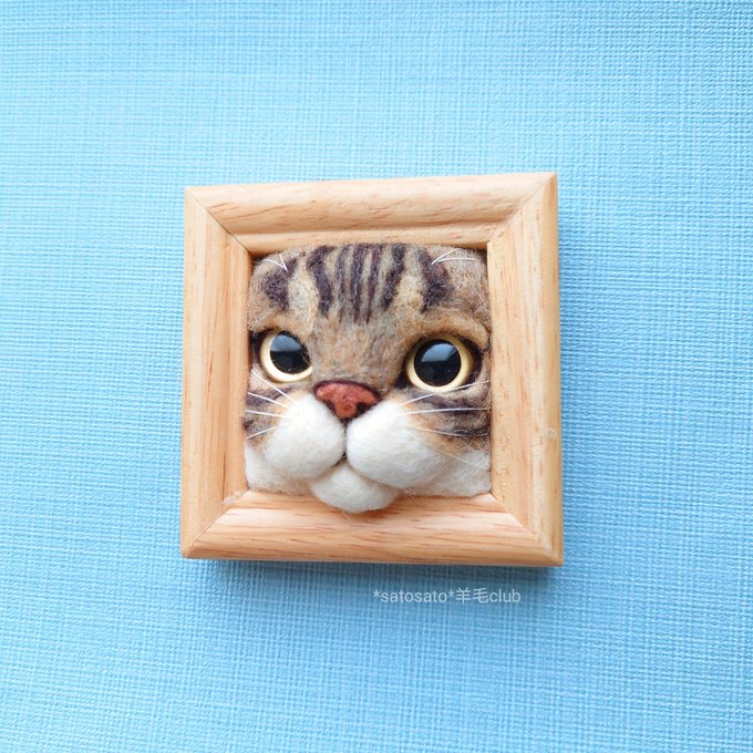 今回のお教室ではレッスン時間内で最初から最後までひと通り私が #猫フレーム を作る工程を観るだけ😄というのをやりました。 生徒さんも何度も猫フレーム作ってますが目からウロコらしいです🐱 #羊毛フェルト #キジトラ #委託販売 #HIMEJI猫フェス2022(山陽百貨店) #ねこ休み展夏2022(浅草橋)