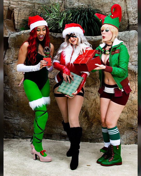 It’s still Christmas! It’s true! Black Cat: @/allisonnbarker (IG) Harley: @/keyna899 (IG) Poison Ivy: me! 📸: @/mykey2lyfe_creations (IG) #cosplay #holidaymatsuri #holmat #poisonivy #harleyquinn #blackcat