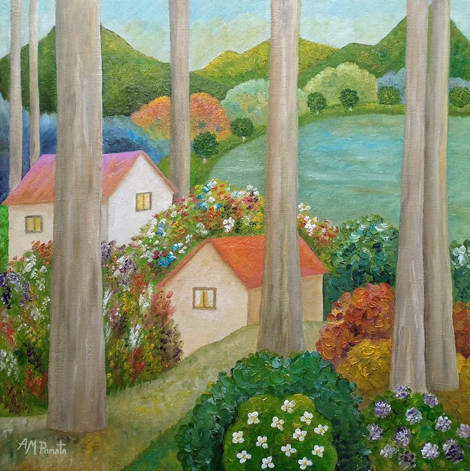 This is my painting "Living Dearly" (please click on it to see it in full). You can check it out here: fineartamerica.com/featured/livin… #art #arte #artlovers #kunst #艺术 #oilpainting #contemporaryart #repost #house #ArtistOnTwitter #mountains #landscape #stripes #flowers #artforsale