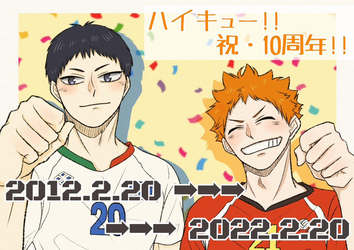 ハイキュー10周年! 出会えたことに感謝の気持ちでいっぱいです✨ 今までもこれからもずっと大好きな作品✨ 過去絵だけどお祝いと感謝を💕 #ハイキュー10周年 #HQ10thAnniversary