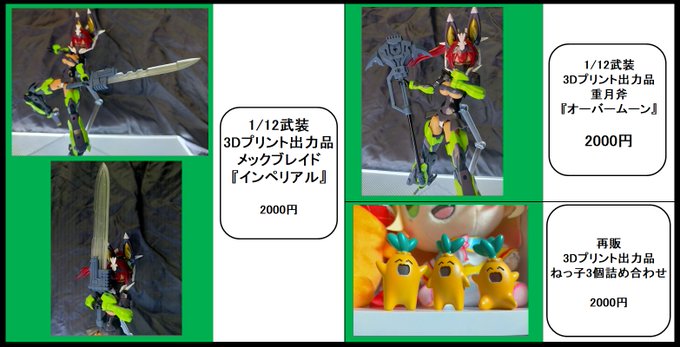 ドロボッチ工房、ホビーラウンド26に卓D-10に出店します 新作は3D出力品武装の ・メックブレイド『インペリアル』 ・重月斧『オーバームーン』 再販品はホロライブ様より版権許諾をいただきました ・ねっ子三体詰め合わせ です! (詳細はツリーにて) #HR26 #ホビラン26 #ホビーラウンド26