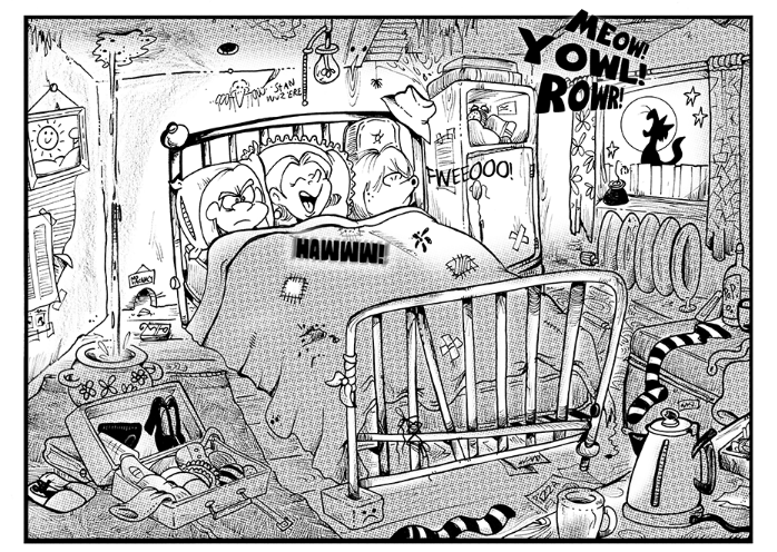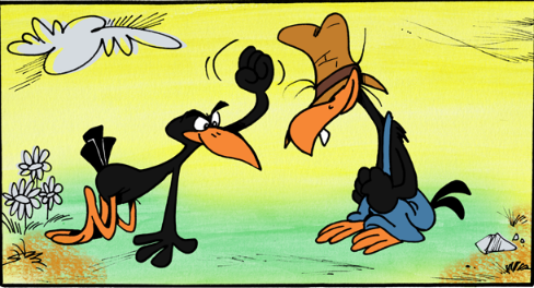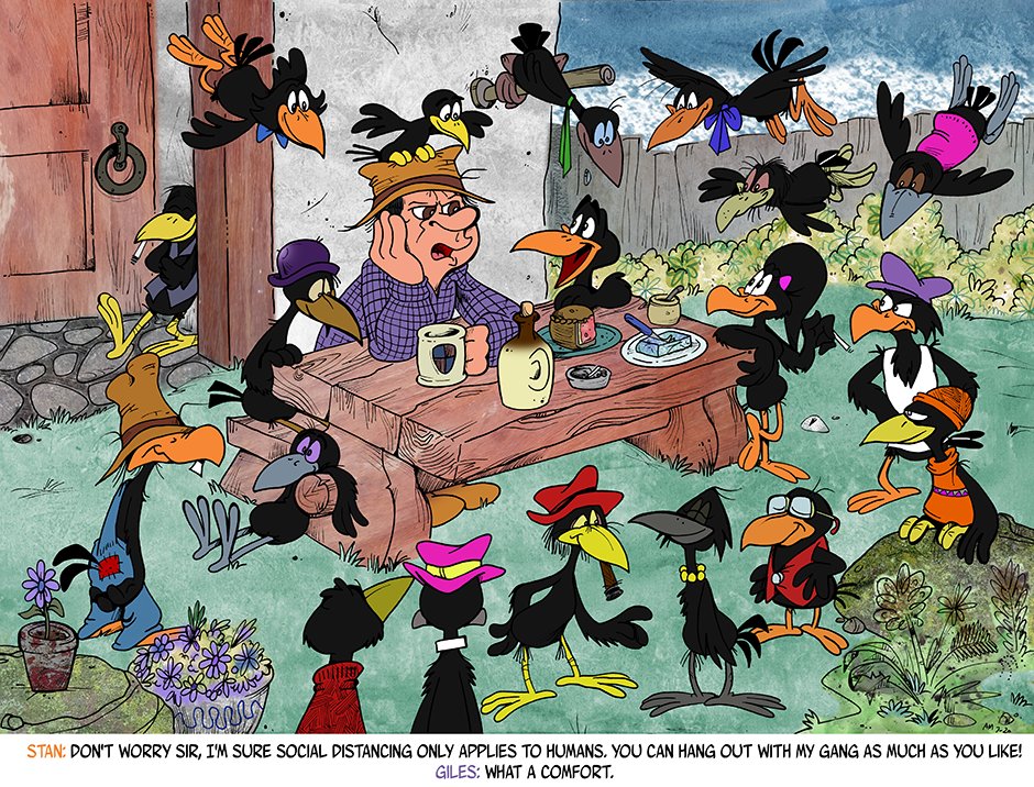 #HRAMcomics #blonge #StantheCrow #AprilMayandJune #comics #webcomicday Rustic English "Top Cat" with crows. tapas.io/episode/576284