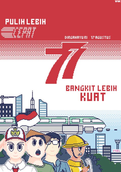 Indonesia Independence Day 77th: Recover Faster, Rise Stronger! A poster about Indonesia in her 77th. #pixelart #illustration #T_MR2 #ArtistOnTwitter #イラスト #ドット絵 #HUT77RI