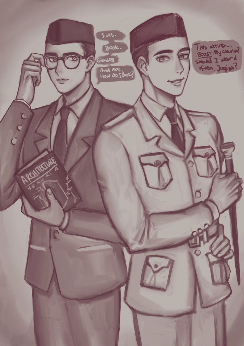 When 2 festiveness mood fused together. Teo cosplaying as Bung Karno and Harry as Bung Hatta. 🎉 Happy anniversary 🎉 #TheSsum_1stAnniversary #HUT78RI #TheSsum #artidn #rkgk #vekuriart