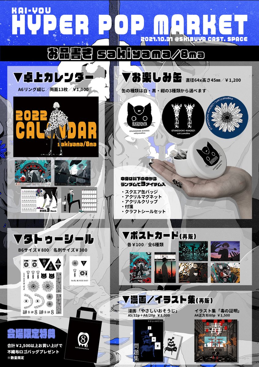 10/31のお品書きです! 商品の詳細はリプ欄に追加してゆきます 【KAI-YOU HYPER POP MARKET】 10/31 12:00-17:00 SHIBUYA CAST. SPACE ※入場無料(事前予約必須) ▼詳細 kai-you.net/hyperpopmarket/ #HYPOPMKT