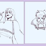 A little comparison as you can tell I've gotten a lot better #spamton #spamtongspamton #pixelart #art #haha #2021 #2022 #stairs #improvement #improved #jackstauber #babyteeth #teeth #yellow #pink #glasses