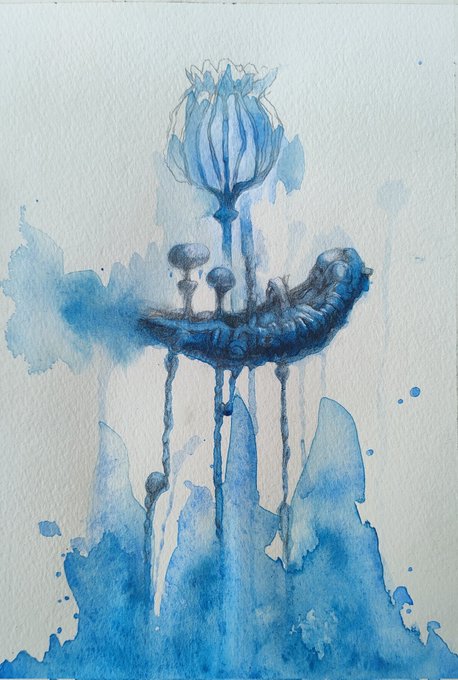 絵を描くのはいいね。 work in progress #watercolor #青 #水彩 #鉛筆画 #pencildrawing #drawing #森 #ドローイング #blue #haikyo #forgottenplaces #illustration #イラスト #イラストレーション #Remains #Ruins #遺跡 #シュールリアリズム #surrealism #contemporarydrawing