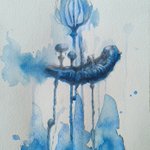 「忘れられた風景」 Forgotten landscape f6パネル 綿布 膠 水彩 #Watercolor #青 #水彩 #森 #forest #城 #castle #ドローイング #廃墟 #blue #haikyo #forgottenplaces #イラスト #illustration #Remains #遺跡 #シュールリアリズム #surrealism #シュール #flowers #contemporarydrawing