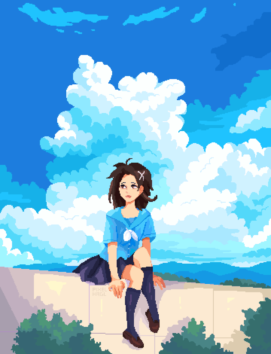 waiting...⛅️💙#HairAccessory for @Pixel_Dailies #pixel_dailies #pixelart #pixel_art #pixels #pixel #dotpict #aseprite #cuteartist #kawaiiart #ドット絵 #毎日ドット絵 #픽셀아트