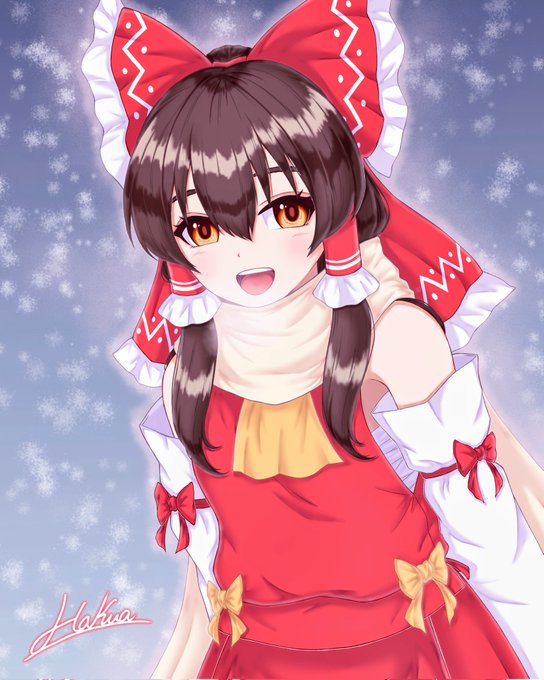 My Hakurei Reimu's fanart. I drew this last year, but i just finished coloring her yesterday. ^-^" #東方Project #fanart #イラスト #HakureiReimu