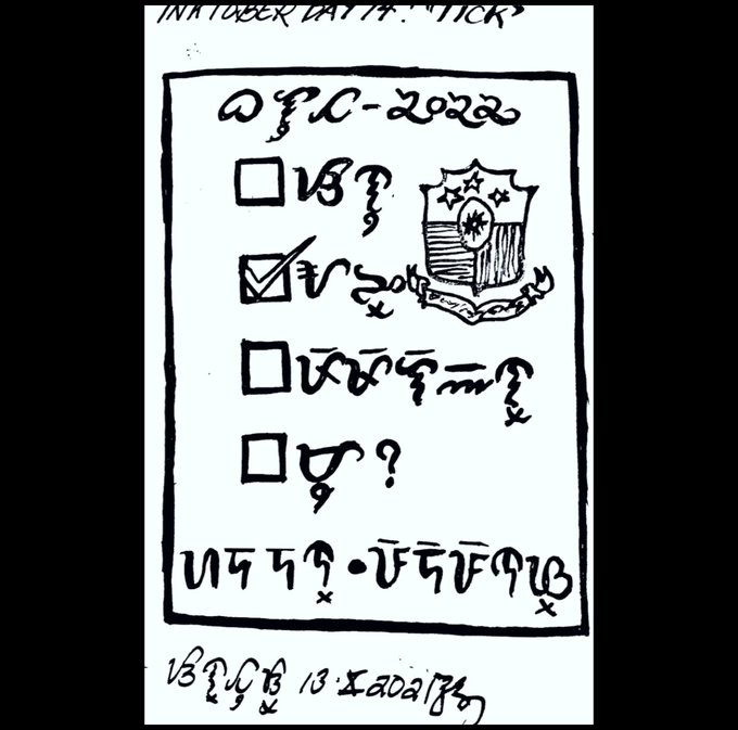 “Tick” Day 14/31 #Inktober2021 (Ticking off the ballot sheet for 2022 elections. The lines are in #baybayin: “Sino ang Pipliin Mo?” Translations next twt.) #inktober #inktoberph #ink #sketch #drawing #ballot #elections #Halalan2022 #polls #tick #traditionalart #artprompt #artph
