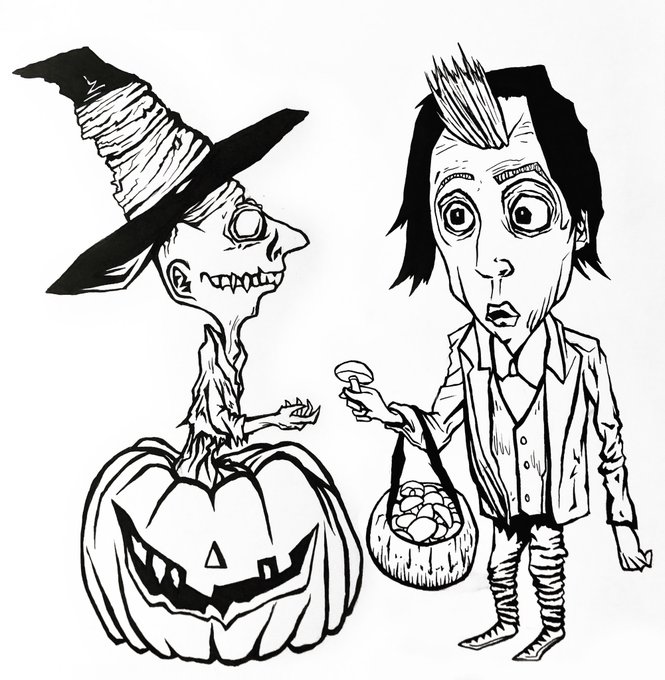 Currently drawing a whole scene around these two. #creepyart #darkart #art #artist #sketch #sketchbook #artwork #illustration #artoftheday #ink #inkdrawing #oc #drawing #illustrator #originalcharacter #halloween #halloweenville #pumpkinpeople #micron #blackandwhite #inktober