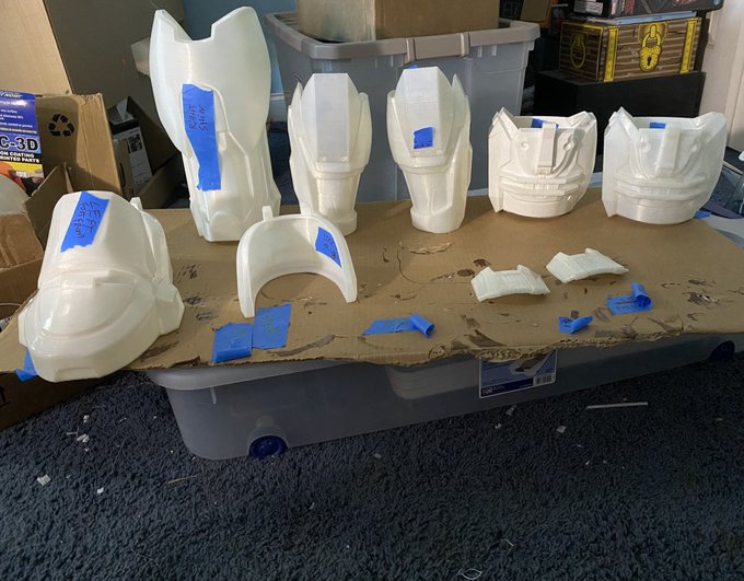 @jentaylortown @SteveDownes117 My Mjolnir Gen 3 is coming along nicely, I think Halsey would be proud lol. So far the right shin, left foot, both arms & hand plates are ready for painting. Man is chief green a hard color to find! #Halo #cosplay #HaloTheSeries #HaloSpotlight @Halo