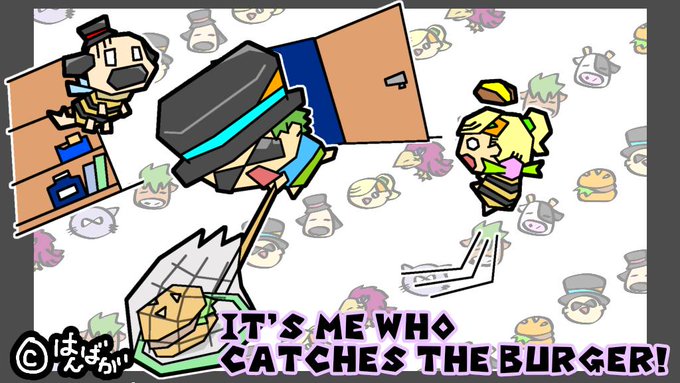 この蜂めー! と言いつつどさくさで ハンバーガー確保するワイ #はんばがのひと #ハンバーガー #hamburger #絵描きさんと繋がりたい #イラスト好きな人と繋がりたい #絵師さんとつながりたい #ワイ絵リメイク