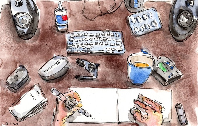 The desk of plenty #desk #art #artinstallation #stilllife #illustration #artjournal #watercolour #selfie #painting #hands