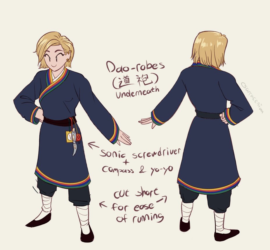 After the new Sea Devils episode, got to think "So what would the Doctor's outfitting really look like if it were traditional Chinese clothing from the getgo?" And of course, it'd probably Taoist robes #hanfu #DoctorWho