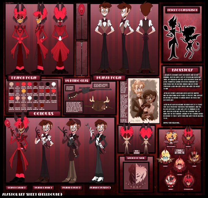 FINISHED!! Finally done Al's ref sheet for #HappilyEverHellbound ❤❤ Had so much fun doing the outfits! #HazbinHotel #HazbinHotelAlastor #HazbinHotelFanart #Alastor