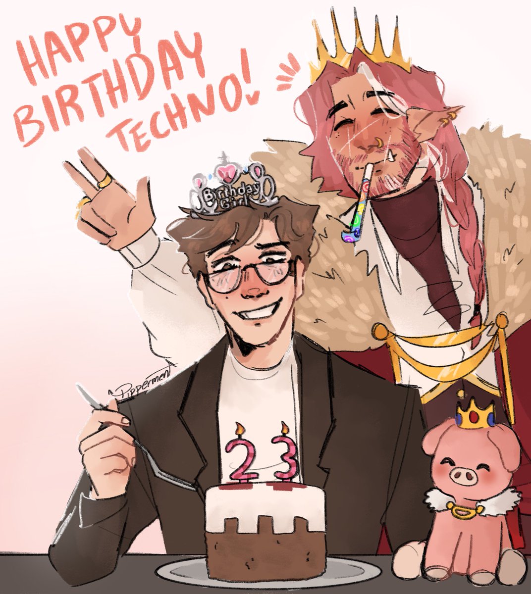 HAPPY BIRTHDAY TO THE ONLY PIG EVER <333 #technofanart #technobladefanart #happybirthdaytechno