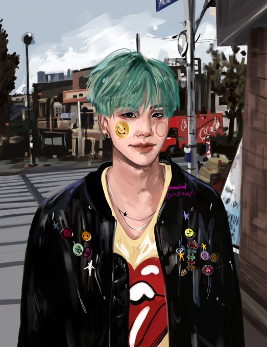 HappyBirthday YOONGI🎂🎉✨ (まにあった) 初め無愛想だな思てたら あの目がなくなって歯ぐきまで見える笑顔に激震が走りまくった麦わらの一味です☝🏻💖 #背景膨らますかんじにハマッてる #HappySUGADay #HappyBirthdayYoongi #btsfanart ⚠️イラストの保存&使用は下の注意事項お守りください🙇♂️