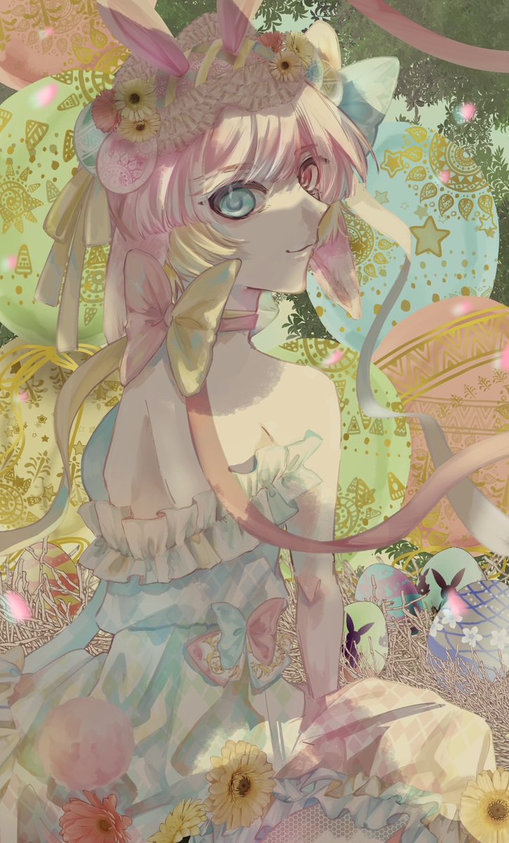 ヒバニー風衣装のしぇいみちゃんとドレディア🐰🌸 (カゴの中は、グラシデアの花やヒバニーやマリルリ等の柄たまご) #しぇいどアート #ドレディア #イースター2023 #HappyEaster2023